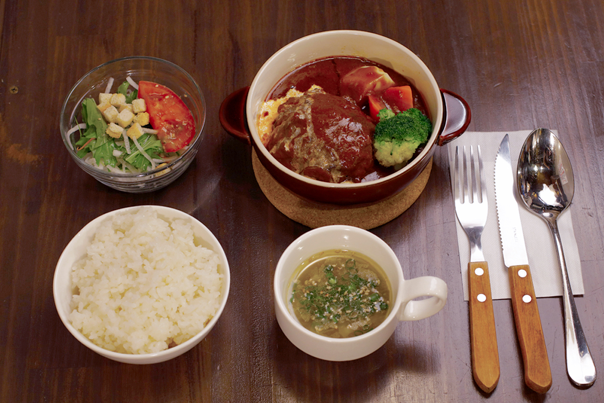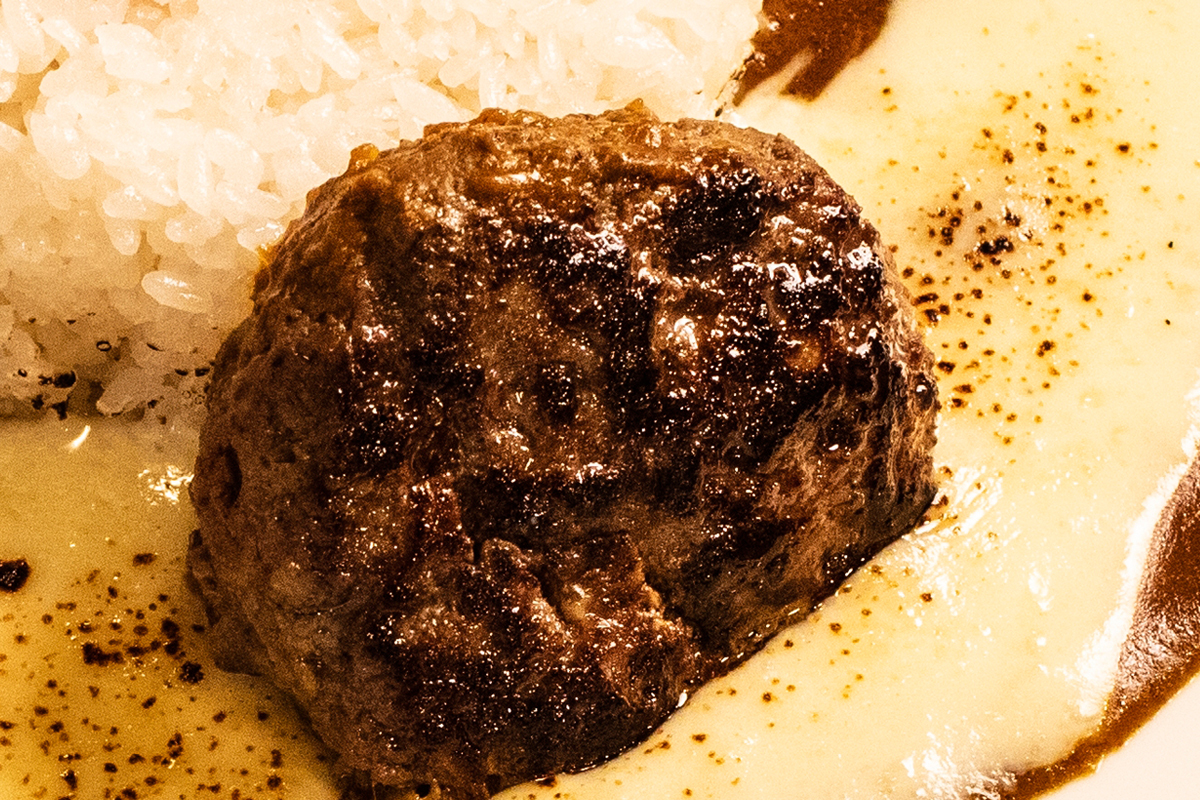美味しいハンバーグを作ろうと話しているなかで他であまりない牛タンを思い付きました。試作を重ねて肉肉しさを残しながらジューシーさを出すことに成功しました。カレーのトッピング目的でしたが現在では夜メニューの鉄板焼、そしてコロナ禍の中でも沢山の方々に味わって頂きたいとの思いから仕出し形態のお弁当へと広がりました。