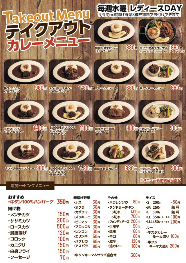 昼夜のそれぞれの時間帯メニューからお選びいただいて、事前にお電話で取りに来られる時間をご指定いただくことも可能です。新規二種、定番カレー屋のカレーピラフ&牛タンハンバーグもございます。